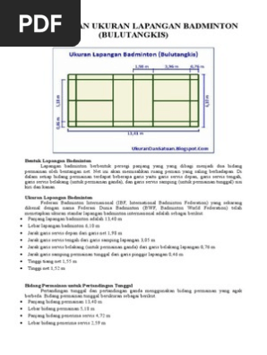 Ukuran Lapangan Bulu Tangkis Standar Nasional Internasional - Lihat Gambar Full