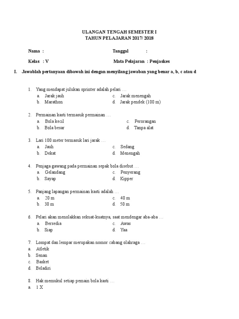 Ulangan Tengah Semester I Pjok - Lihat Gambar Full