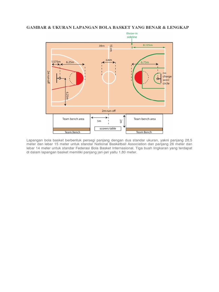 Ukuran Lapangan Basket Lengkap - Lihat Gambar Full