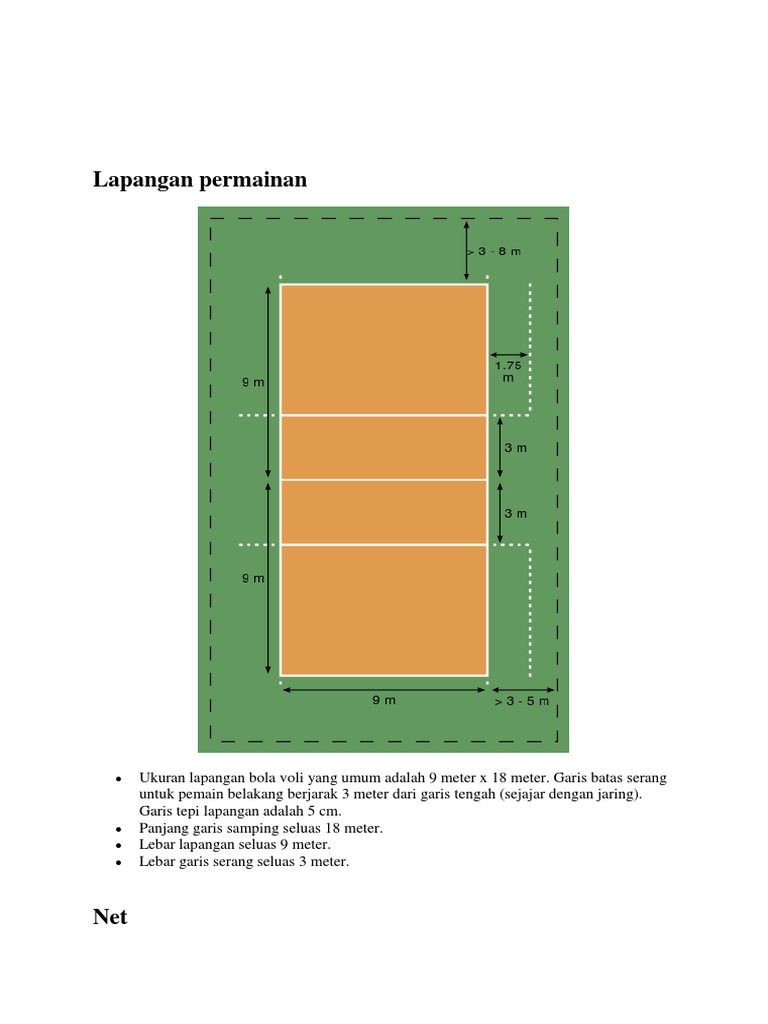 Ukuran Lapangan Bola Voli Ukuran Net Standar Nasional - Lihat Gambar Full