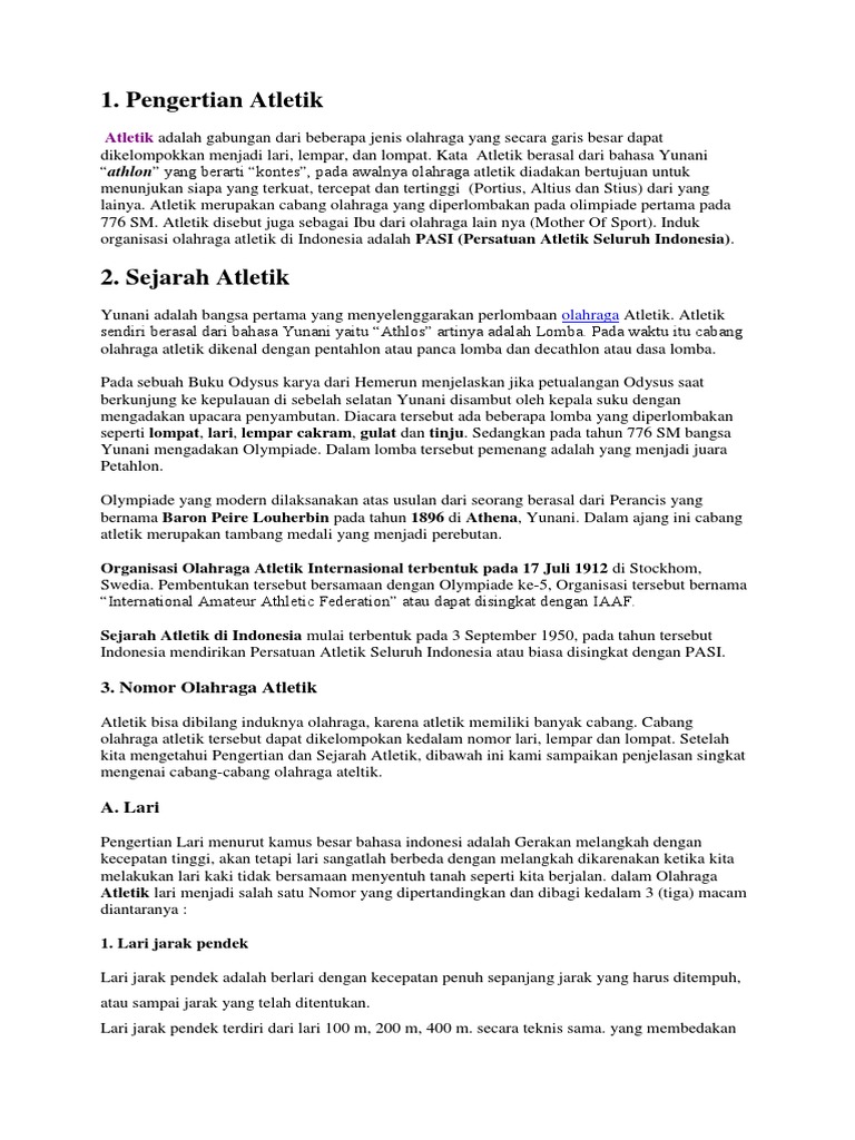 Pengertian Atletik Definisi Sejarah Singkat Cabang - Lihat Gambar Full